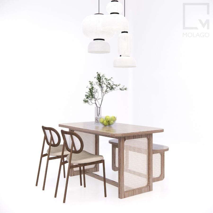 Thiết Kế Đẹp Mắt: Phong cách Japandi thanh lịch và tinh tế, bộ bàn ghế ăn này chắc chắn sẽ làm nổi bật không gian ăn của bạn.