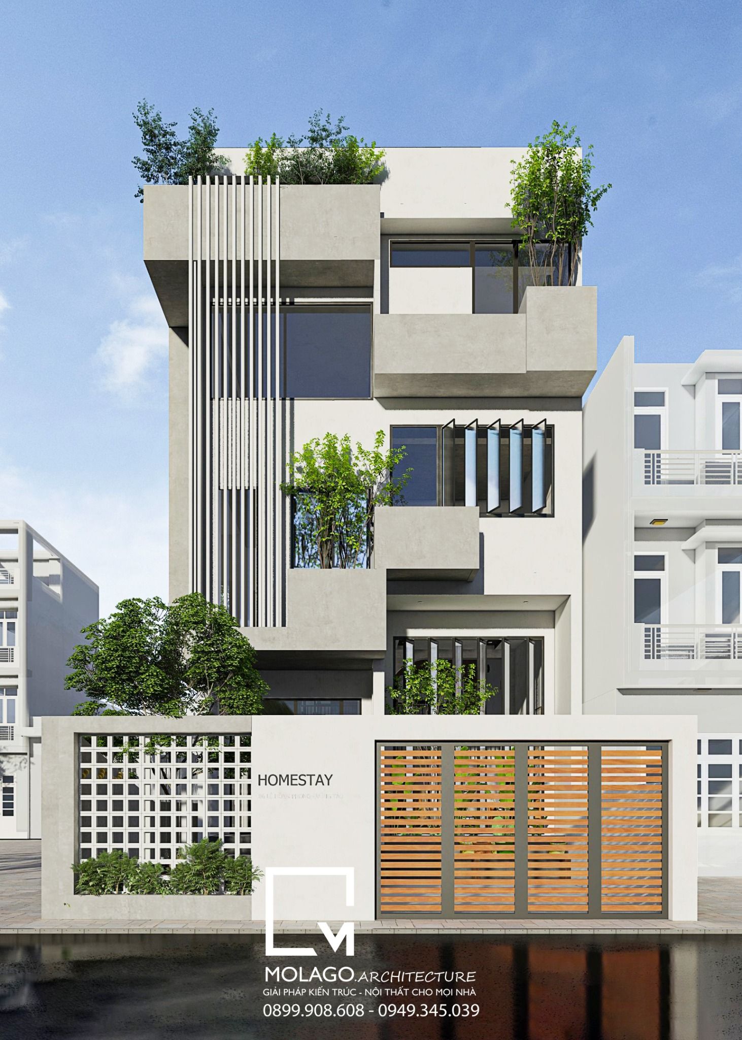 Hiện nay, thay vì chọn khách sạn là nơi dừng chân nghỉ ngơi khi du lịch, nhiều người lại lựa chọn homestay bởi vẻ đẹp nhẹ nhàng, thân thiện với thiên nhiên và tiện nghi như chính ngôi nhà của mình. Để kiến tạo không gian nghỉ ngơi theo xu hướng hiện đại hòa quyện thiên nhiên kết hợp vài điểm nhấn tinh tế chính là tiêu chí mà Molago muốn đưa vào bản vẽ thiết kế nội thất homestay đẹp tại Vũng Tàu. Hãy cùng Molago khám phá chi tiết từng không gian thiết kế nội thất dự án này qua bài viết dưới đây nhé!