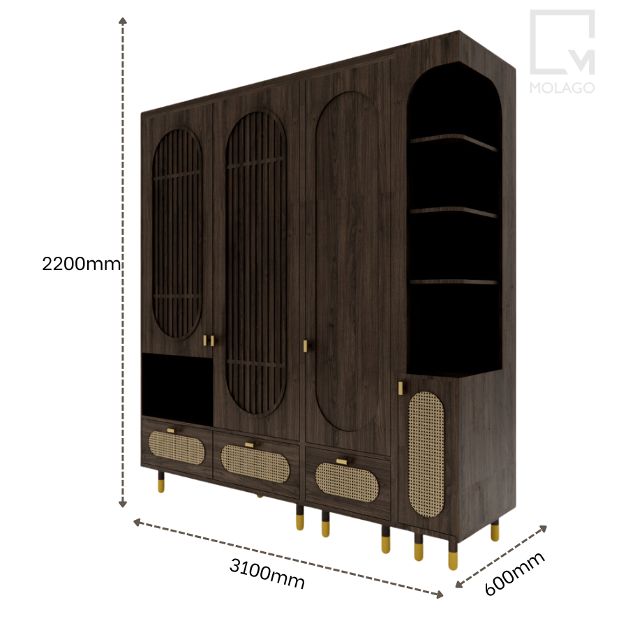 - Bộ tủ quần áo: 1800 x 600 x 2200mm.