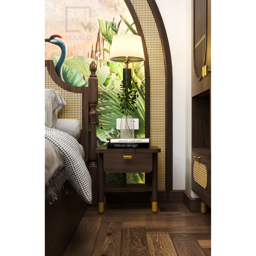 - Thiết kế: Mỗi tab đầu giường có 1 ngăn kéo và 1 kệ để đồ tiện dụng, giúp bạn để các vật dụng cá nhân như đèn ngủ, đồng hồ, sách vở hay điện thoại một cách gọn gàng.