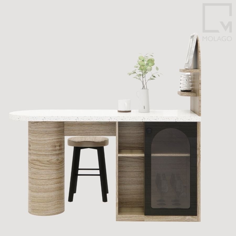 - Chất liệu: Bàn làm từ MDF melamine cao cấp với mặt đá hoặc mặt gỗ tự nhiên, chân bàn làm từ gỗ tự nhiên, chắc chắn.