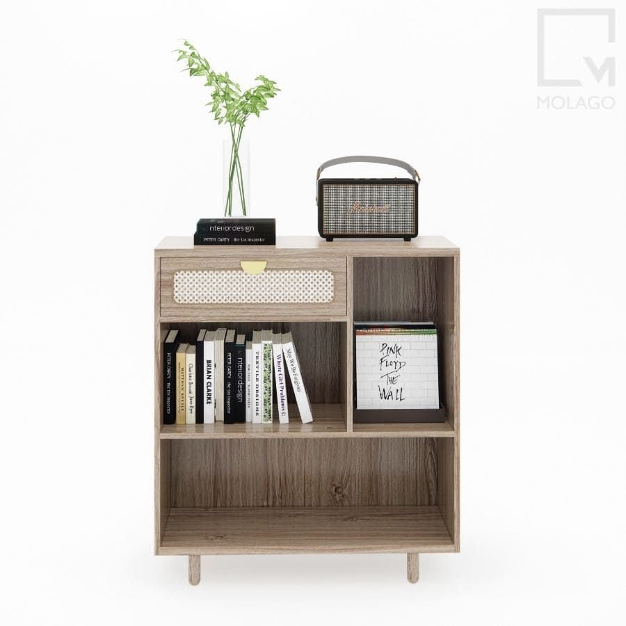 Kệ trang trí MDF melamine với một hộc kéo panel mây đan mang lại sự kết hợp hoàn hảo giữa chức năng lưu trữ và tính thẩm mỹ. Kệ có thiết kế thông minh giúp bạn dễ dàng sắp xếp sách vở, vật dụng trang trí, đồng thời tạo điểm nhấn sang trọng cho không gian phòng khách. Các chi tiết mây đan giúp kệ trang trí không chỉ đẹp mà còn mang đến cảm giác gần gũi với thiên nhiên.