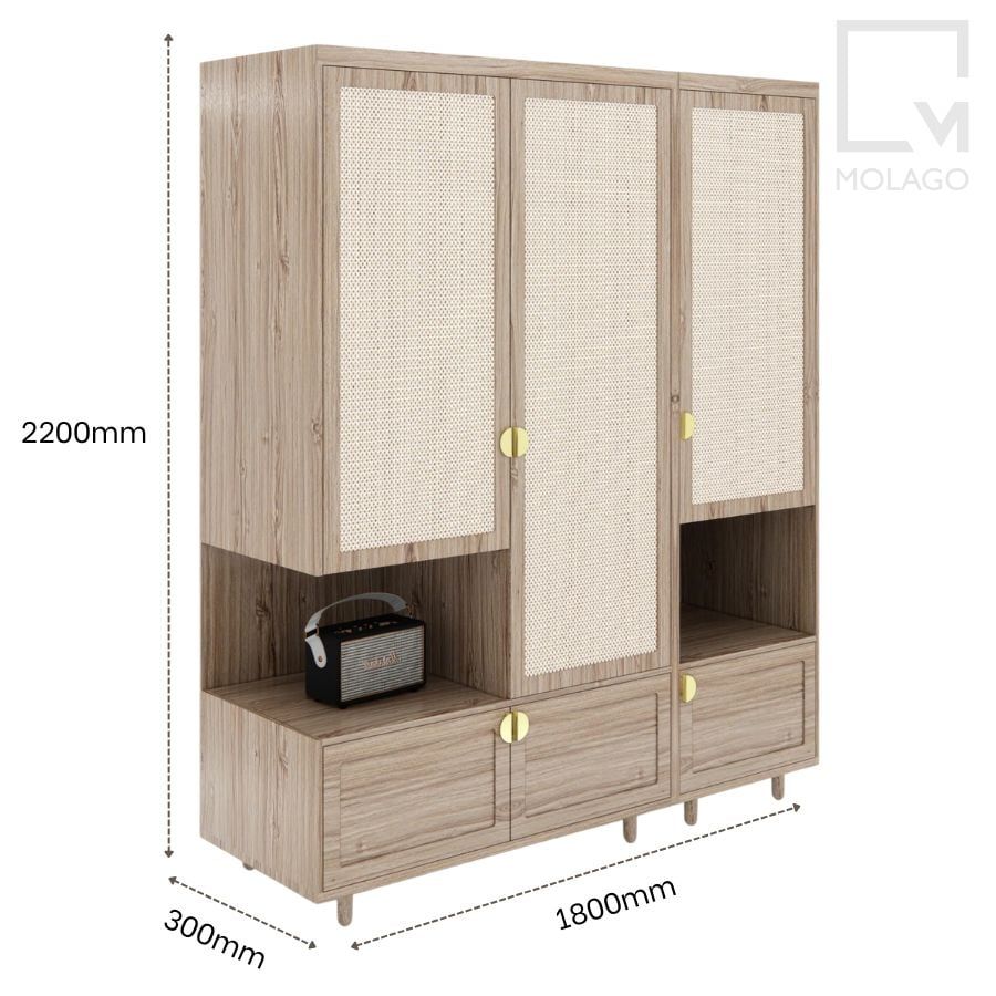 - Bộ tủ quần áo M1/M2 + M3: 1800 x 600 x 2200mm.
