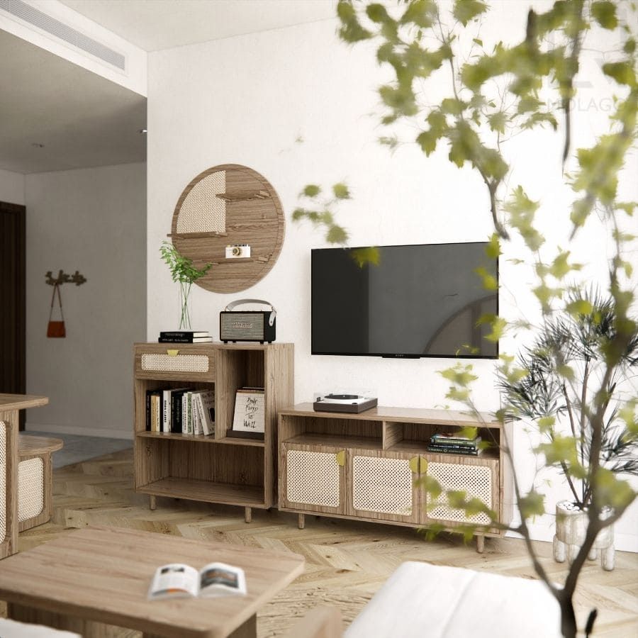 - Tính thẩm mỹ cao: Sự kết hợp giữa chất liệu MDF melamine và panel mây đan tạo nên vẻ đẹp tinh tế và hiện đại, mang đến một không gian sống sang trọng và ấm áp.
